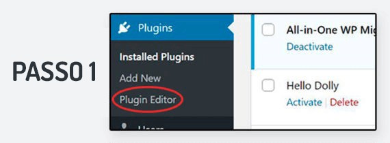 Vá para o editor de plug-ins no painel de menu esquerdo do painel de administração.