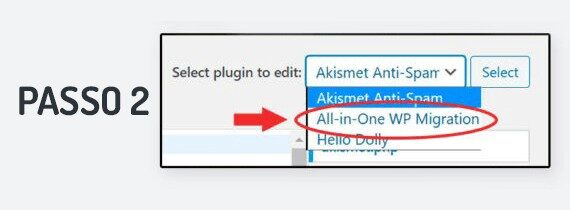 No canto superior direito, escolha o plugin All-in-One WP Migration no menu suspenso e clique em selecionar.